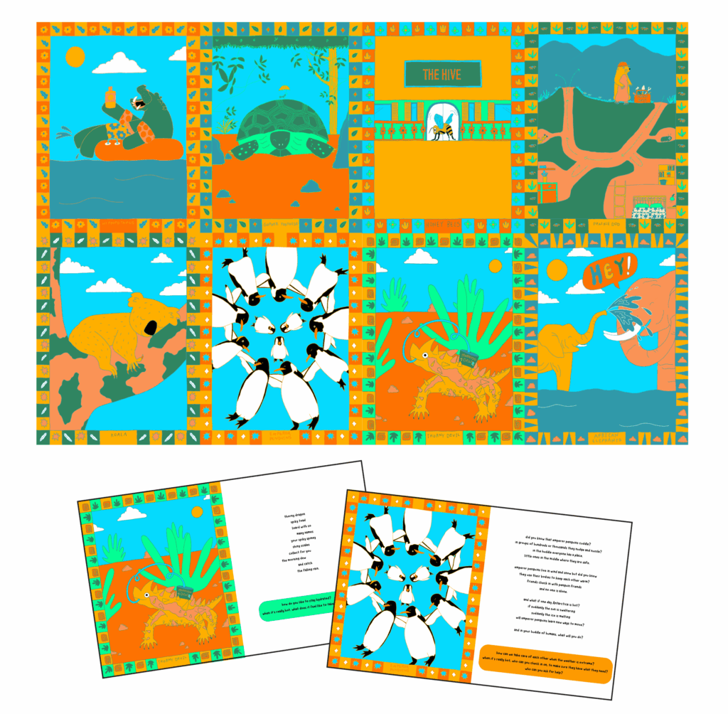 “Animals Are Cool” is an engagement tool to work with elementary aged children to create resources that can share knowledge with their similar aged peers. It draws on the artists’ combined experience as educators and artists and engages youth as important conveyors of information to their community, and as one of the groups most highly critically impacted by heat. By learning how animals deal with heat in unique ways with illustrations and poems, kids are inspired to think about how they stay cool and keep their communities safe in summer. This package includes: