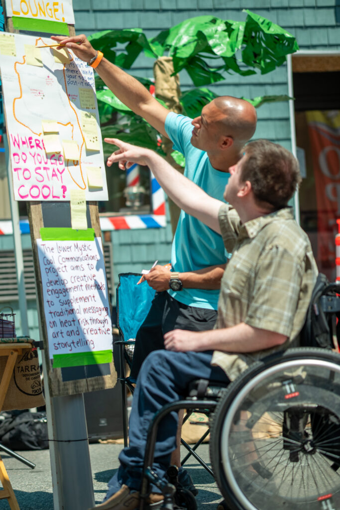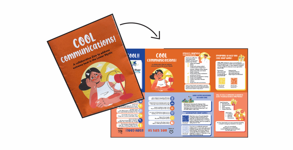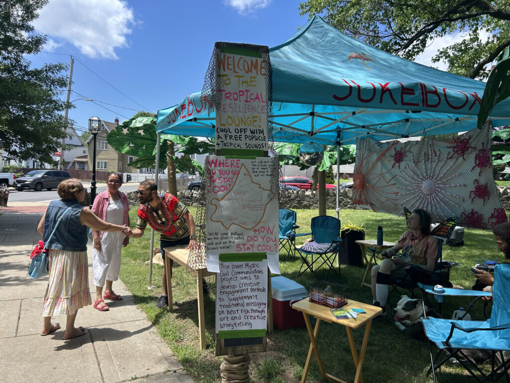 In early 2025, MAPC collaborated with Mystic River Watershed Association (MyRWA) and launched a Call for Artists to imagine creative ways of engaging communities around heat. The goal is to complement traditional heat messaging, such as social media, city websites, flyers, mailers, and local TV, and by using art and storytelling, to build more interactive conversations with communities, especially those most vulnerable to heat. Three artist groups were selected to develop prototypes, piloted across Lower Mystic communities over the summer, to spark conversations, strengthen social ties, and build resilience.